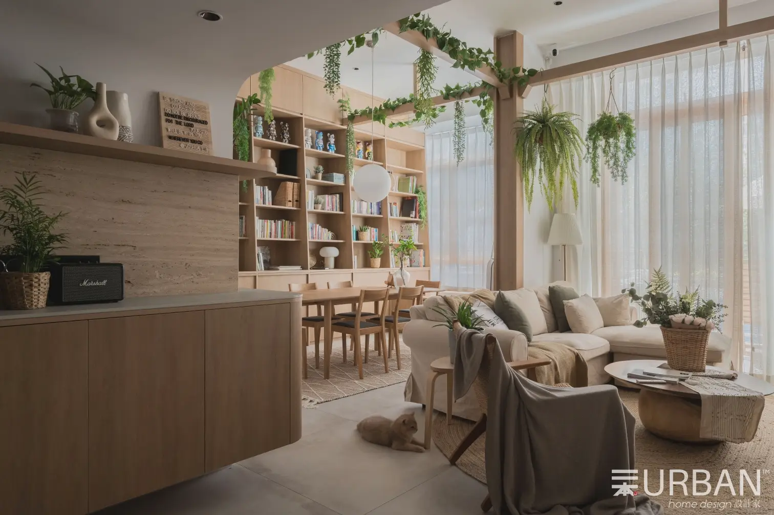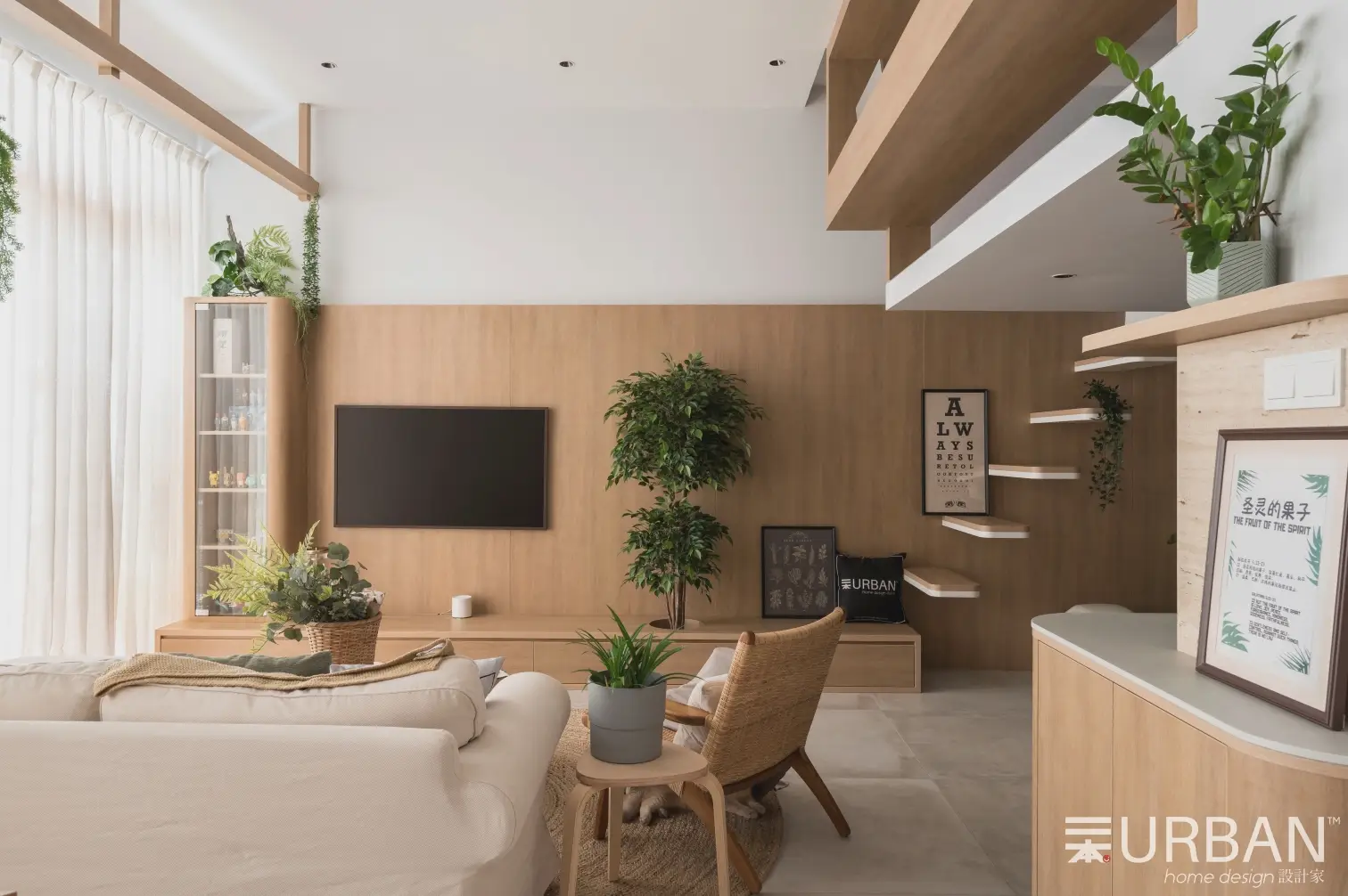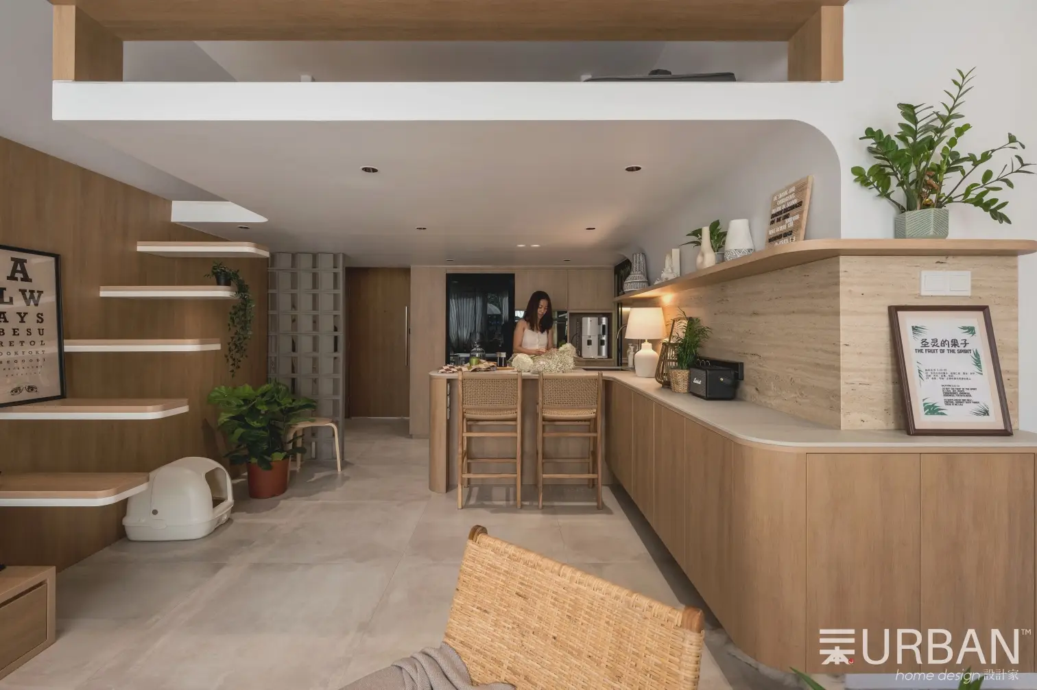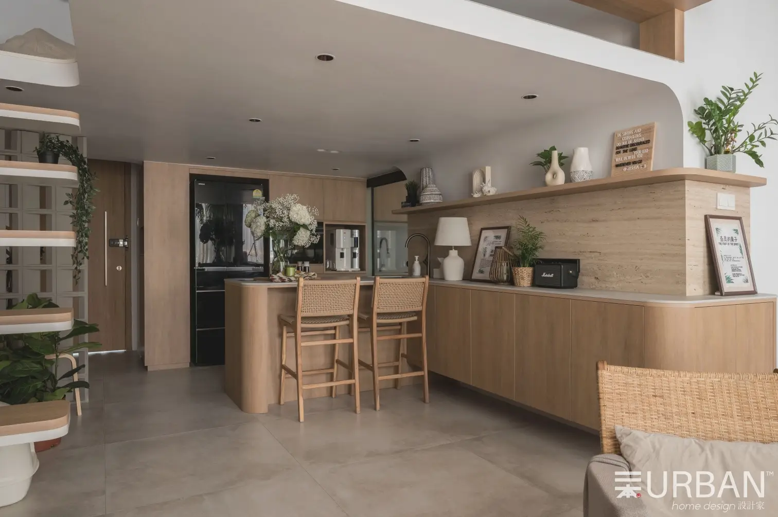The house incorporates a plethora of natural elements, including featured cement texture floor tiles, nature crafted travertine stone, and the warmth of wood-feel laminate. White-negative space provides brightness, while curved carpentry and plants soften the lines and angles of furniture creating a sense of balance and harmony in the design. Beyond aesthetics, there is a dedication to sustainability and ecological well-being through the use of low VOC plywood and Dulux Wash & Wear paint. Integrated smart warm lighting via Tuya enhances user comfort and experiences.