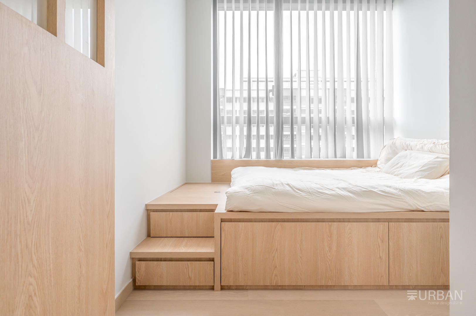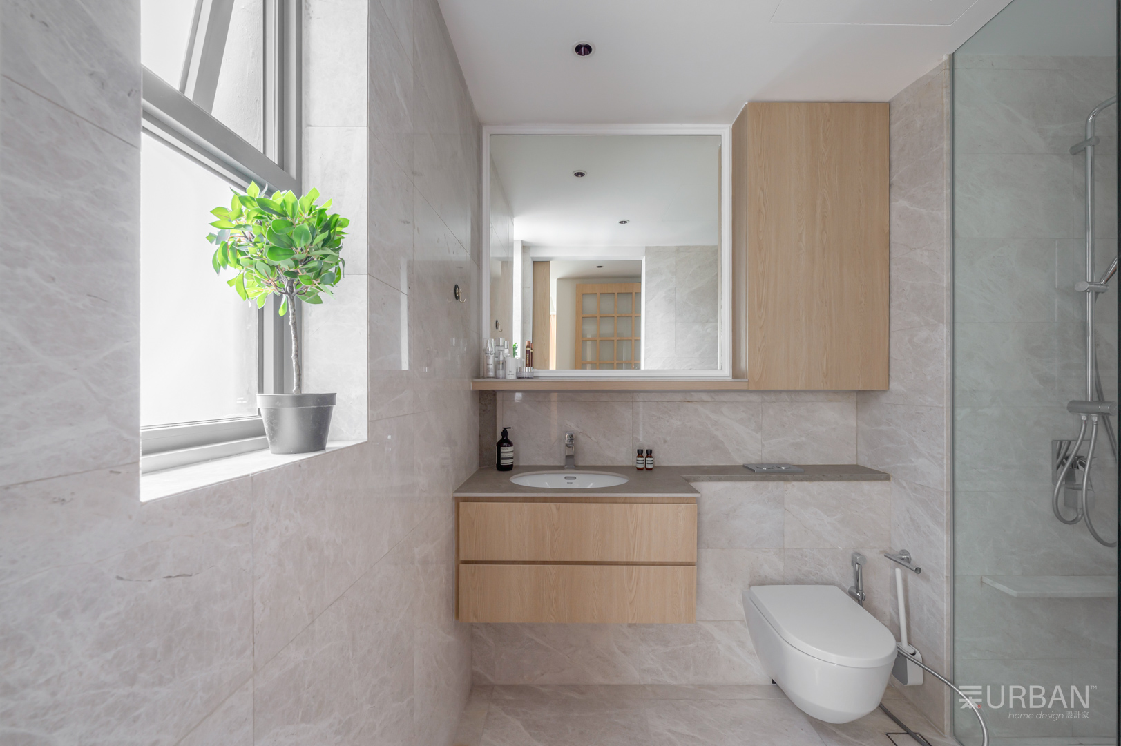 This condo apartment was designed for a couple who has a deep appreciation for arts together with their well-loved rabbits. Calligraphy, Japanese-inspired shoji doors and elements of rattan in the carpentry give the house character of artistic craftsmanship. The walkway is clad with wood carpentry with displays of Japanese dolls – a collection of the homeowners. At the main entrance, a specially-designed calligraphy display was built as a trademark to the artistic house so that the homeowners can display their different artistic works.