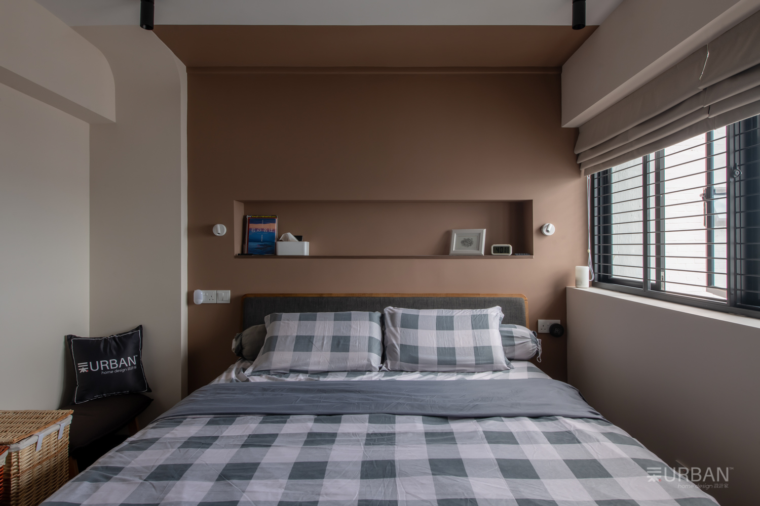In the bedrooms, bold navy wardrobes provide clean, integrated storage, while soft walls and neutral bedding create a relaxing retreat. Bathrooms are compact yet stylish, featuring green vanities, patterned tiles, and matte black fixtures that give off a boutique, hotel-like feel. Thoughtful details—like round mirrors and warm lighting—make these smaller spaces feel special.