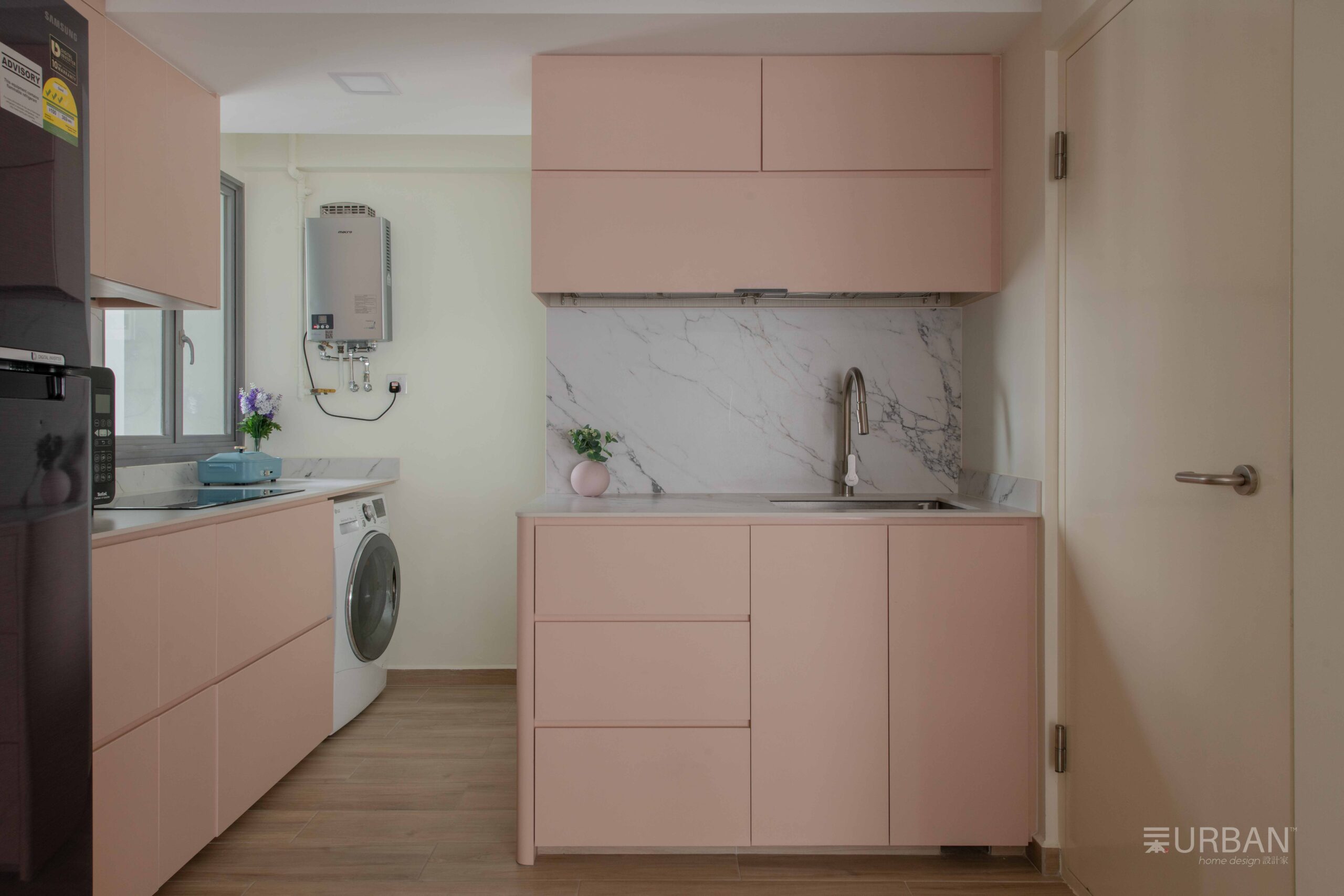This is a thoughtfully designed home that embraces clean, minimal Scandinavian style. With a soft palette of white, beige, pale pink, and natural wood, the space feels bright, calm, and welcoming. The layout is open and efficient, featuring smart built-in storage that keeps clutter out of sight while maintaining a sleek, streamlined look.